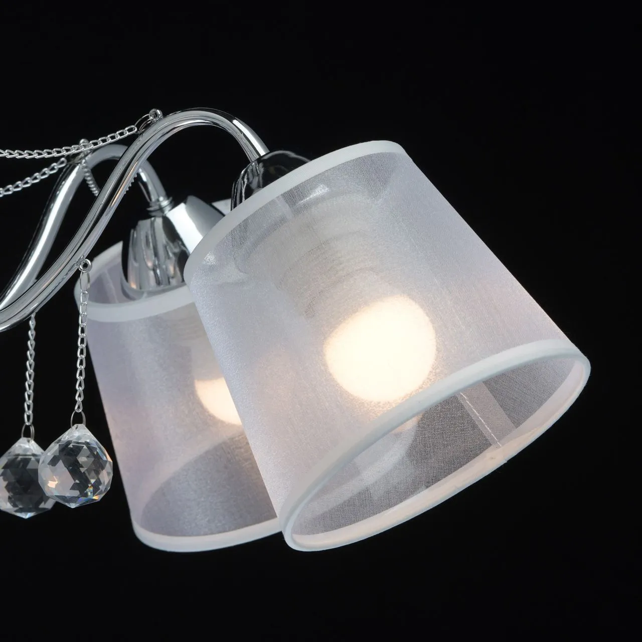 Основание/ металл/ хром. Абажуры/текстиль/ белый. Декор/ прозрачный хрусталь