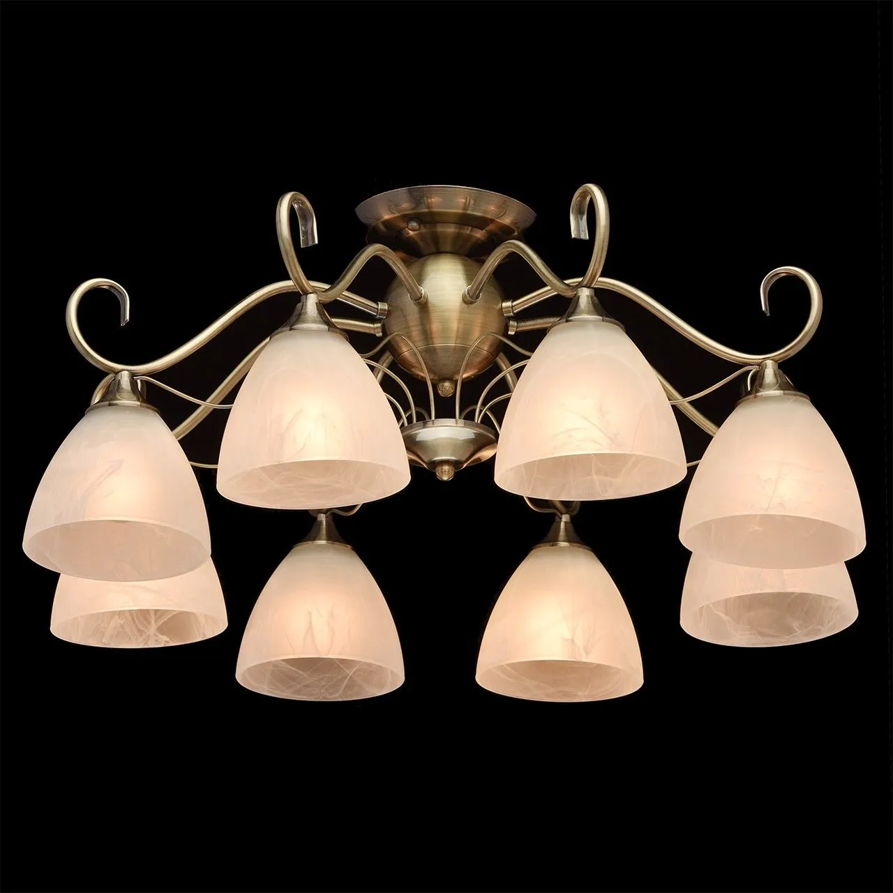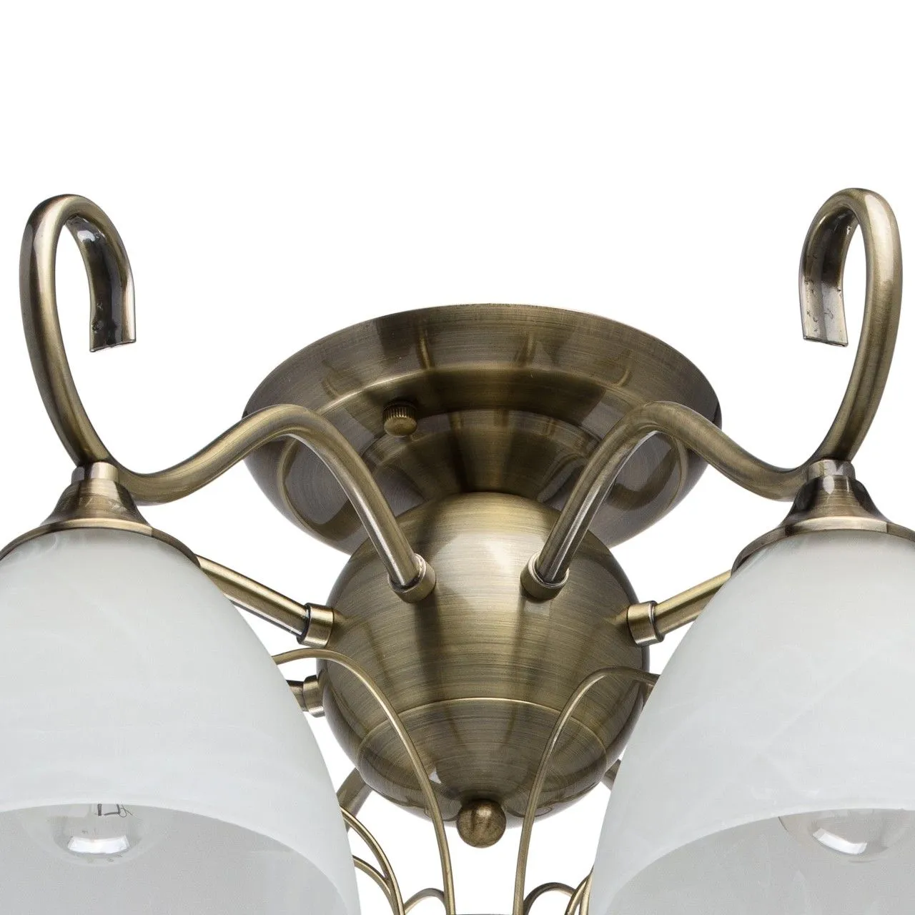 Металлическое основание цвета античной бронзы. Плафоны - алебастровое стекло.