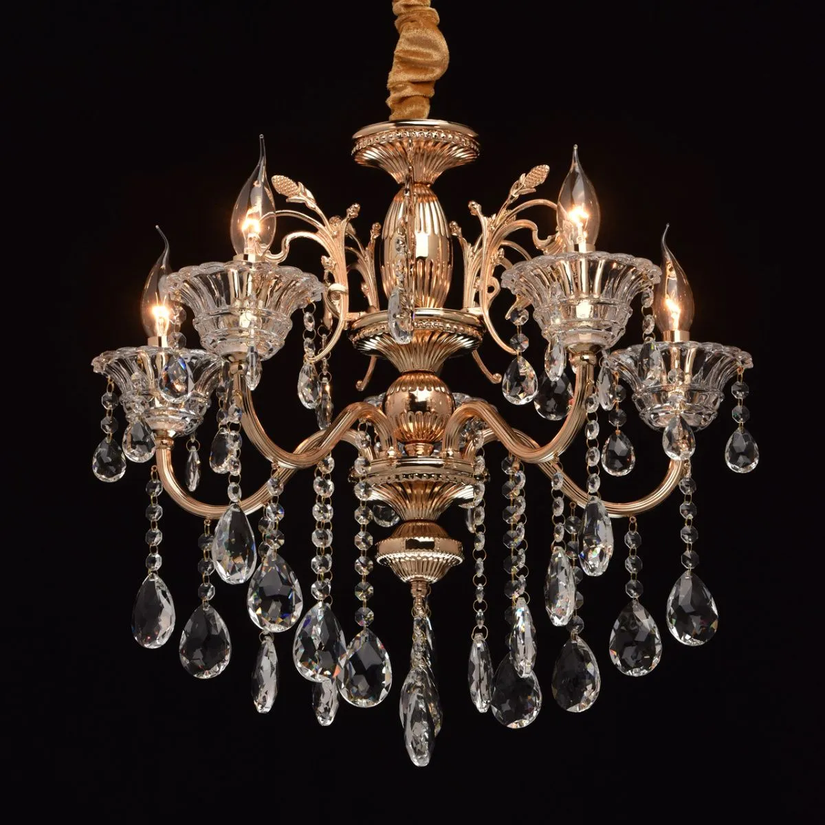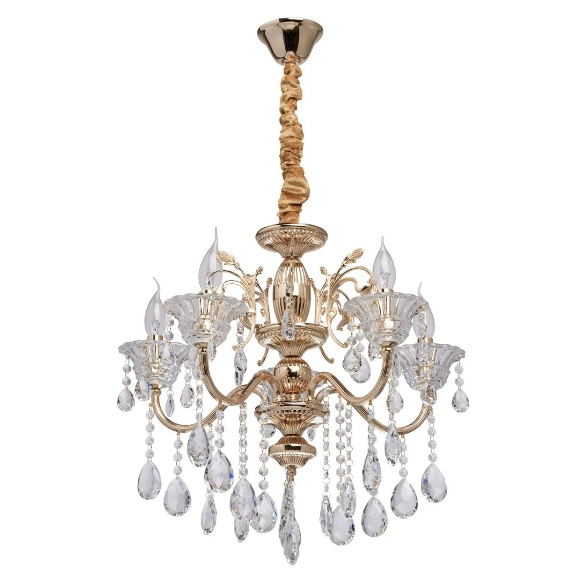 Металлическое основание цвета золото. Декор - хрусталь, декоративное стекло