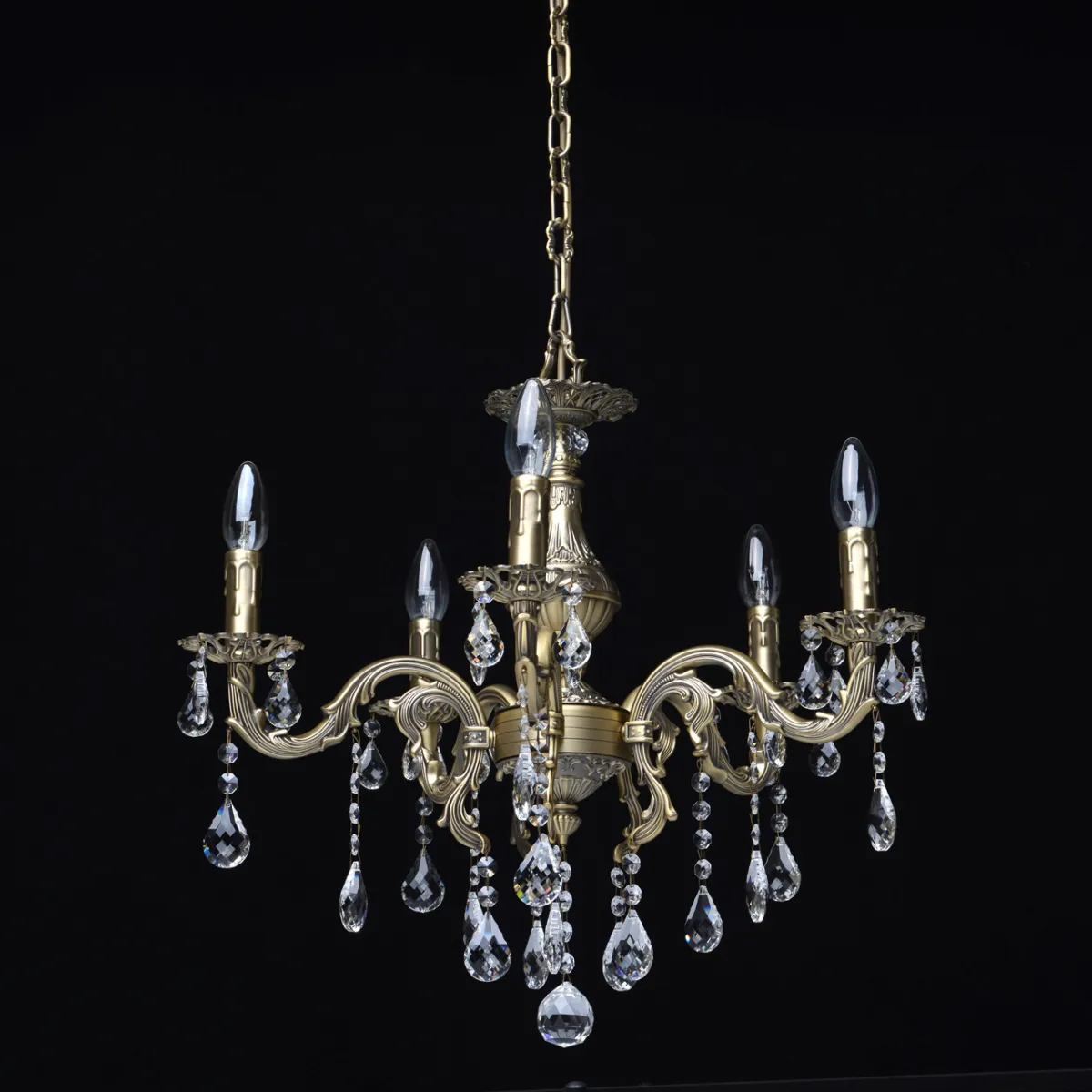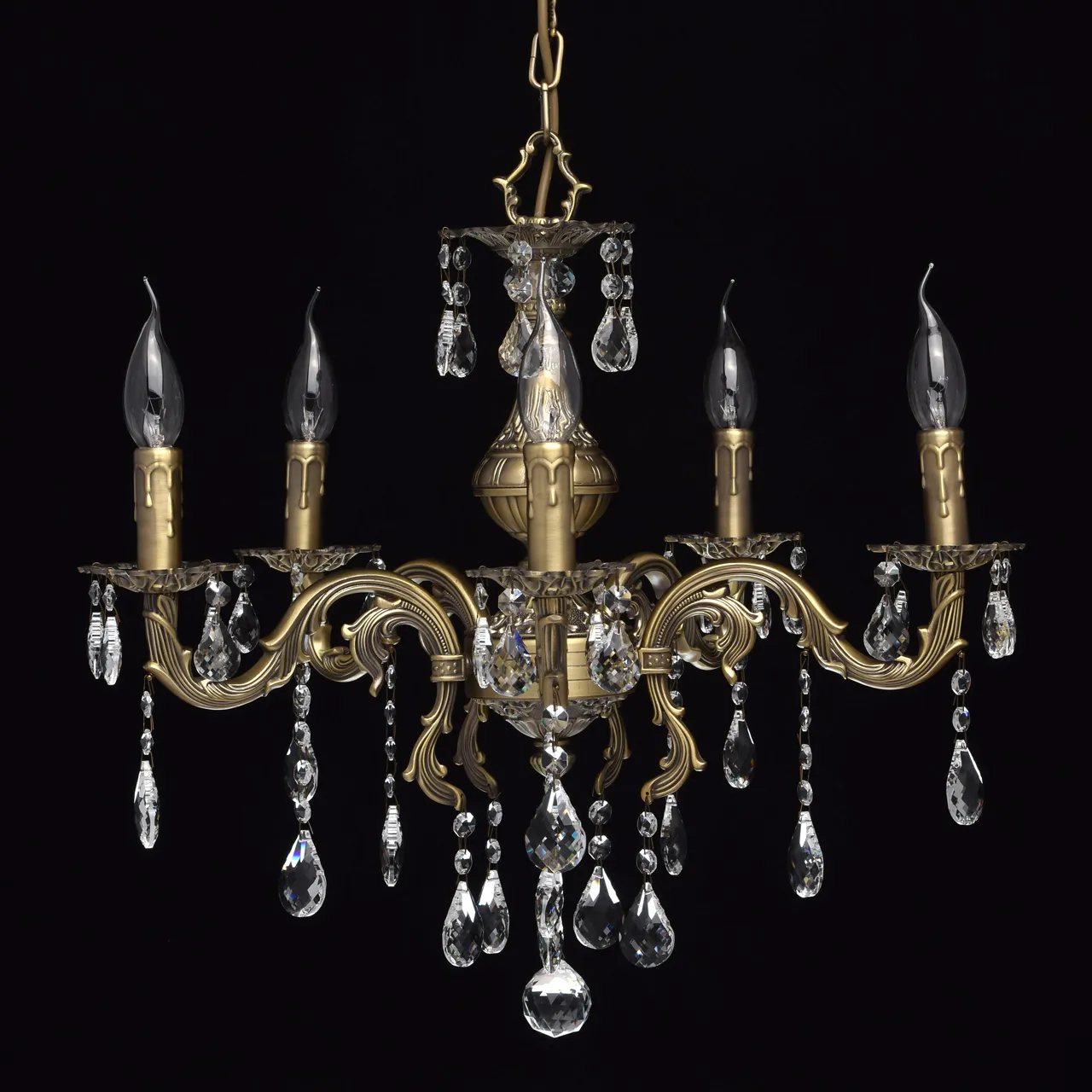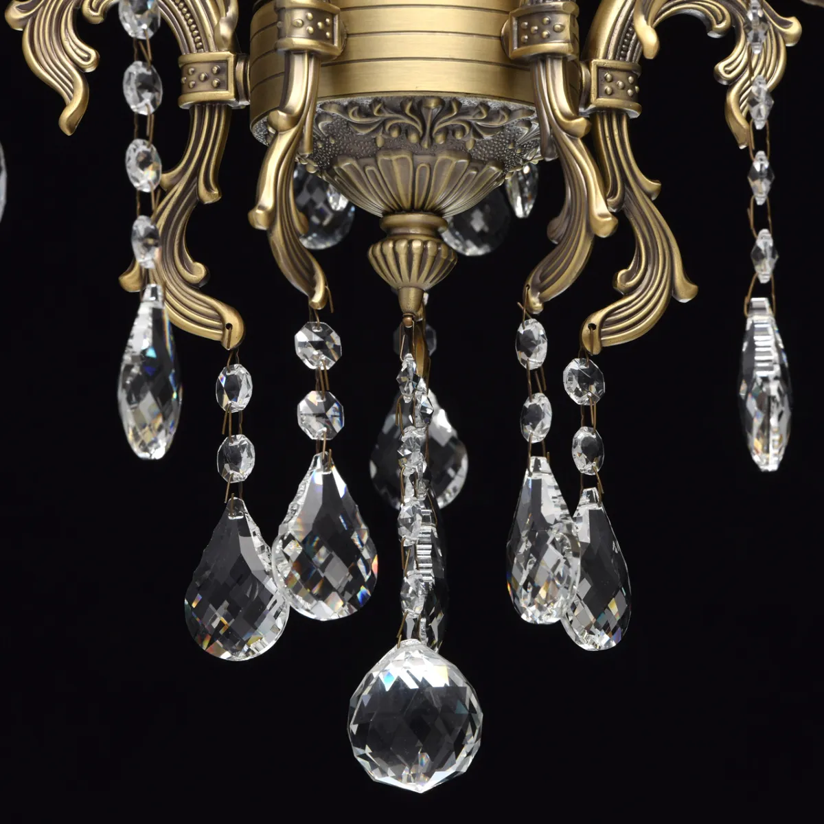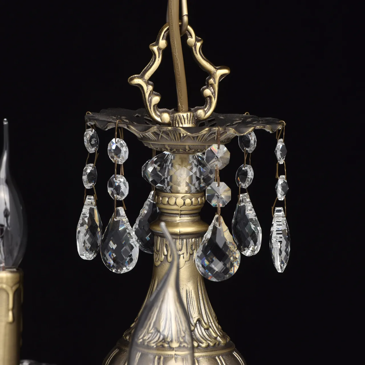Металлическое основание цвета бронзы, декоративные подвески из хрусталя
