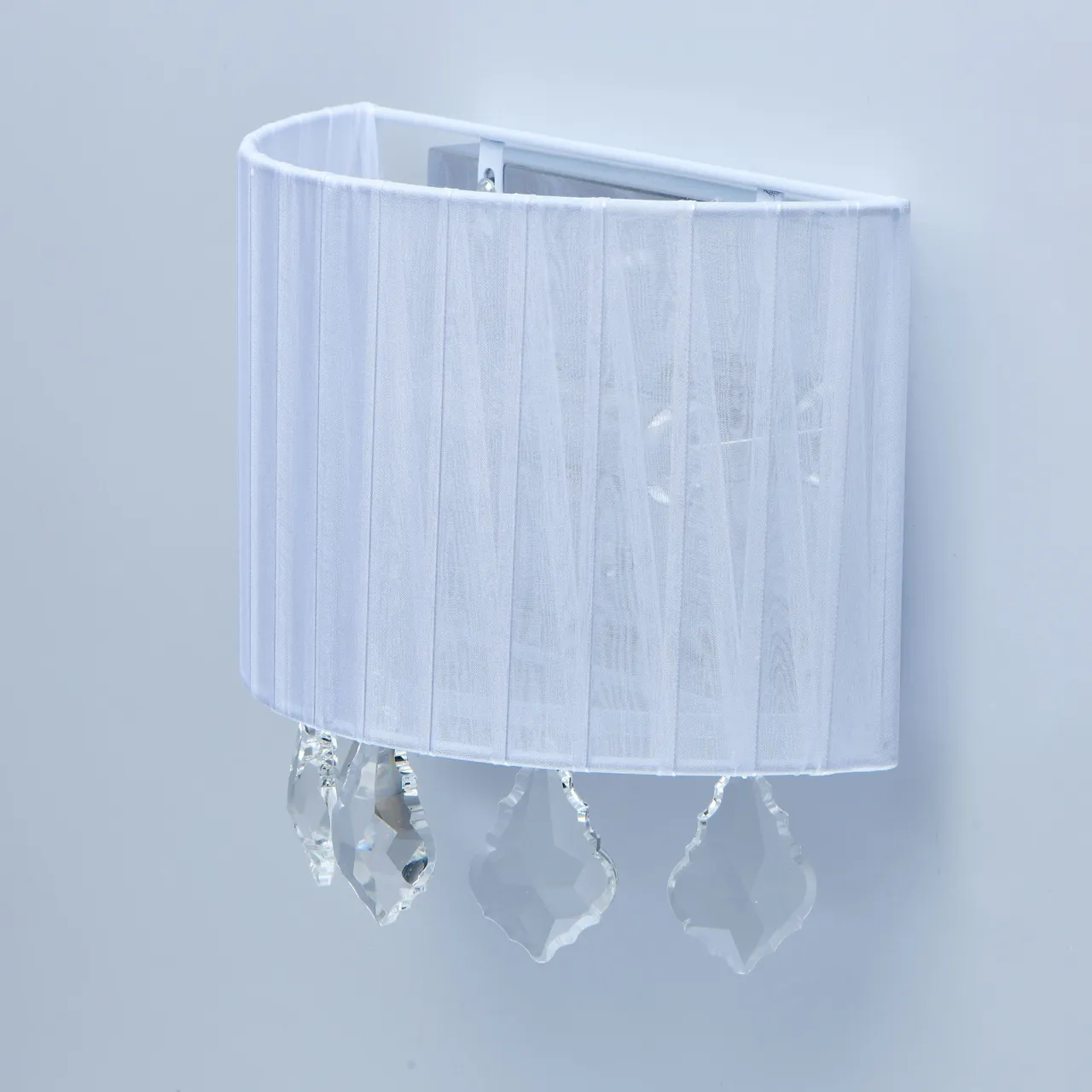 Основание/металл/хром Плафон/органза/белый Декор/хрусталь/прозрачный