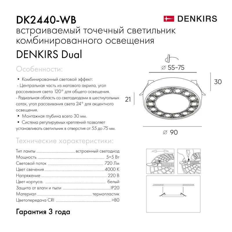 Встраиваемый светильник Denkirs DK2440-WB купить в Хабаровске по лучшей цене